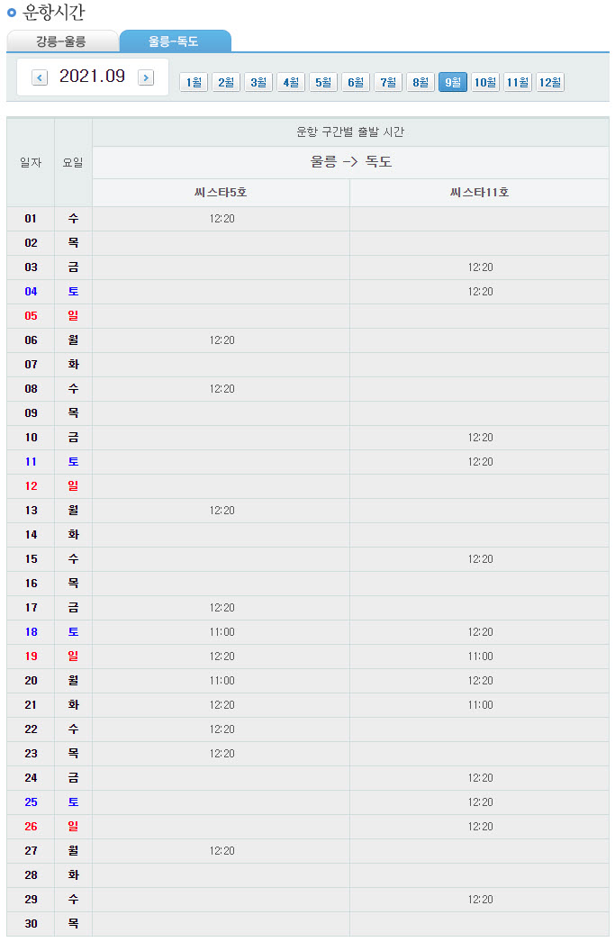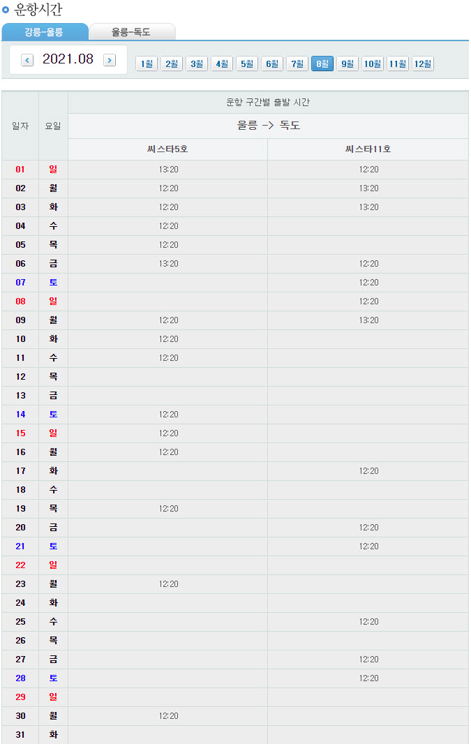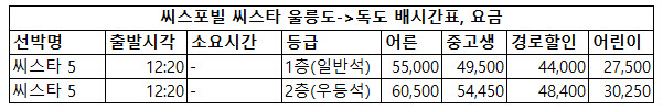 | 씨스포빌 씨스타 울릉도->독도 배시간표, 요금 | |||||||