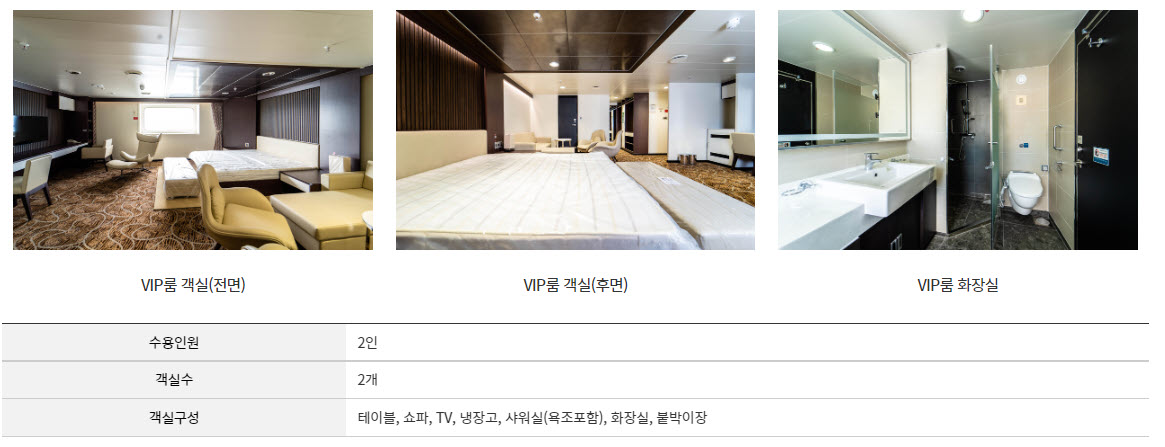 | VIP | 2 | 더블 | ₩840,000 | ₩924,000 | 객실 |